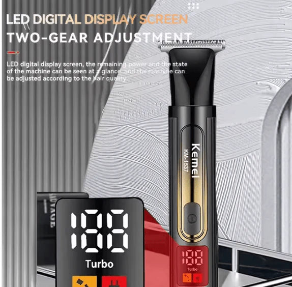The Kemei KM‑1537 is a multifunctional electric hair clipper & shaver, with a built-in back trimmer, combining flexibility and comfort in personal hygiene care.